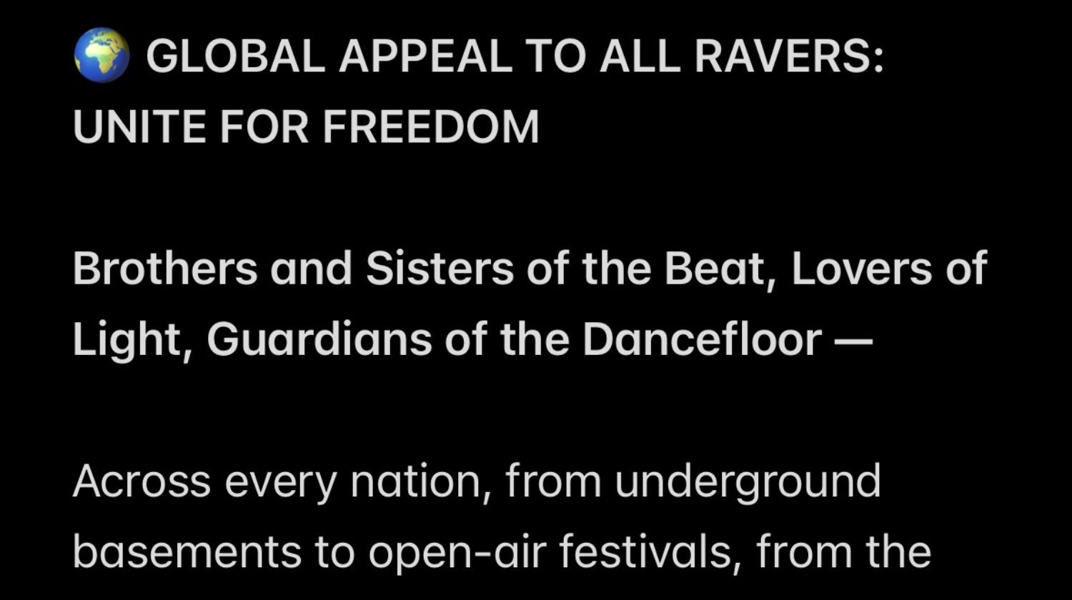 #RaversForFreedom #GlobalUnity #ProtectTheBeat