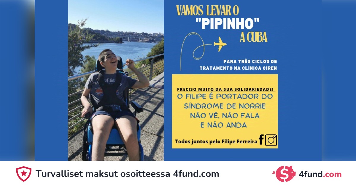 Kaiken vuosien varrella tehdyn työn jälkeen, sekä fyysisen kuntoutuksen että kognitiivisen stimulaation osalta, uskomme, että Filipe on valmis kolmen kuukauden intensiiviseen hoitoon Kuuban Ciren-klinikalla.