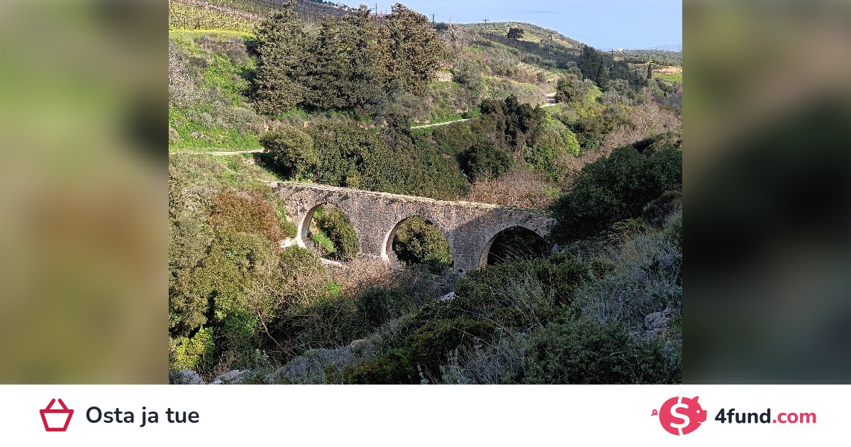 In the hinterland of the city of Heraklion lies the Knossos Gorge. Surrounded by a hilly landscape, small paths and gravel roads lead through a small green oasis. At times, the trail runs parallel to the gorge, passing vineyards, olive groves, and small gardens. This tour takes us to 2 aqueducts and a church.
