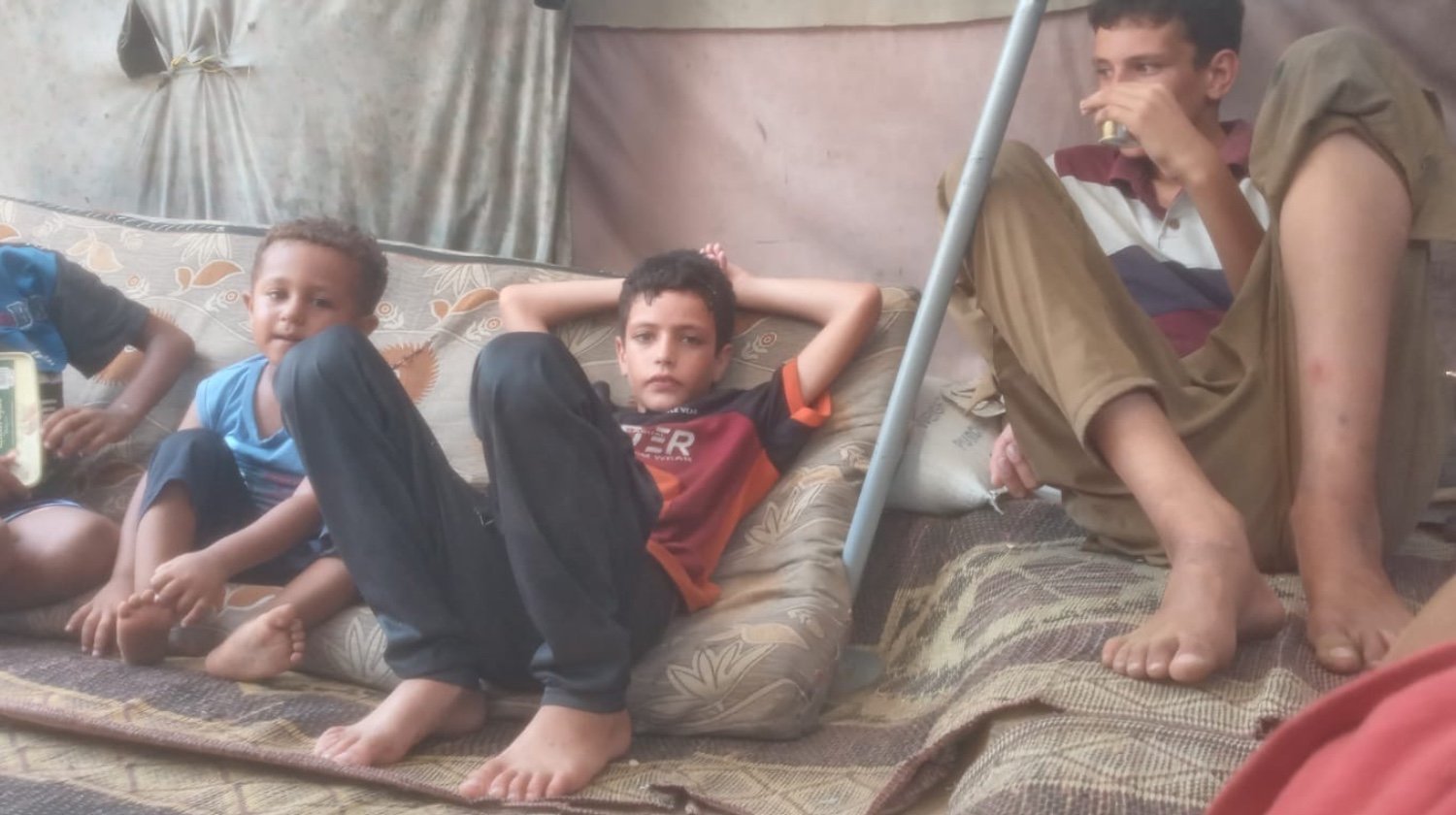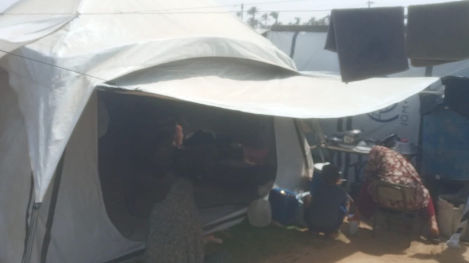 Diemžēl jūnijā Sanada ģimenei nācās pārcelties uz telti, jo izraēlieši piespieda visus viņa pilsētas Khan Younis iedzīvotājus pārcelties uz ļoti šauru pludmales joslu, lai izvairītos no bombardēšanas. Iekšēji pārvietoto personu nometnē, kur viņš tagad dzīvo, gandrīz miljons Gazas iedzīvotāju dzīvo pārpildītās brezenta teltīs vai šķūnīšos, kur nav ne atkritumu savākšanas, ne notekūdeņu novadīšanas. Nav arī tekoša ūdens vai elektrības. Viņš, viņa vecāki un trīs brāļi un māsas tagad dzīvo teltī, kuras izmēri ir trīs uz diviem metriem. Viņiem nepietiek ēdiena, tālu no pietiekama. Šadi slīgst parādos, jo viņam jāatmaksā nauda, ko viņam aizdevuši draugi vai radinieki, lai ieliktu pārtiku sievas un bērnu mutēs. Savukārt šiem draugiem vai radiniekiem nav pietiekami daudz naudas. Tas viss ir nemitīgs trūkuma un raižu stāvoklis.