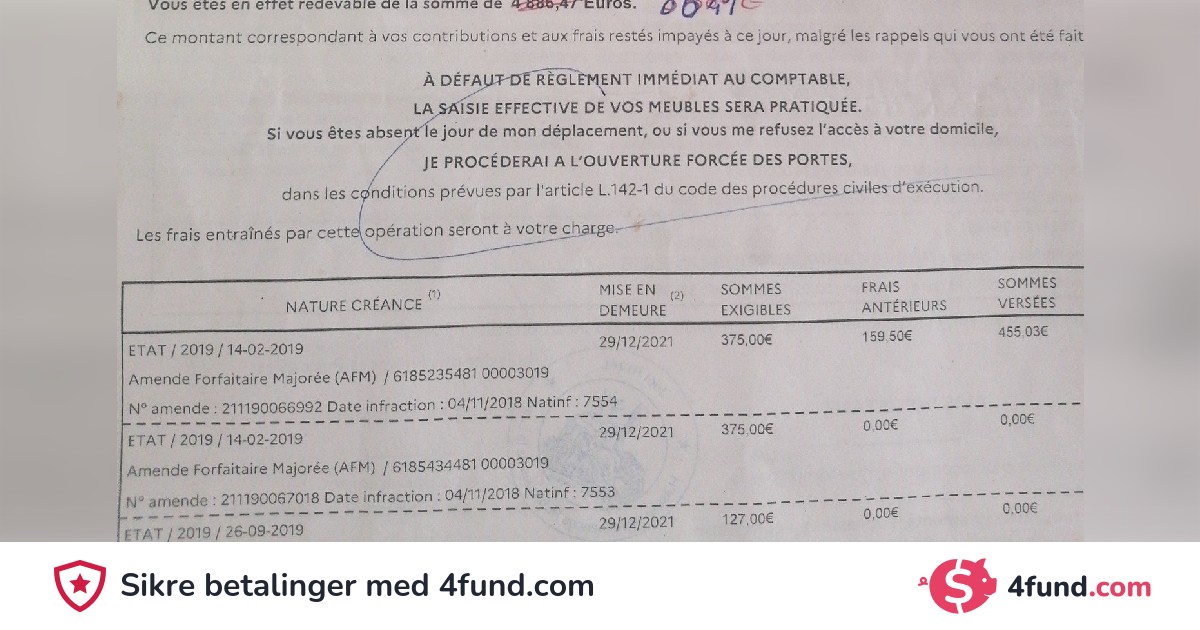 Jeg klarer virkelig ikke å betale dette beløpet, noe som hovedsakelig skyldes covid, og det er veldig urettferdig. Ellers vil det ta meg 15 år å betale. Jeg tjener omtrent minstelønn, er gift og venter en jente. Disse bøtene er et stort problem for meg. Namsmannen truer med å bryte opp døren min, og skattekontoret tilbyr meg bare en 12-måneders betalingsplan på €740 per måned, som jeg åpenbart ikke kan betale. De nekter å gi meg en kortere betalingsplan, som selvfølgelig ville tatt år.