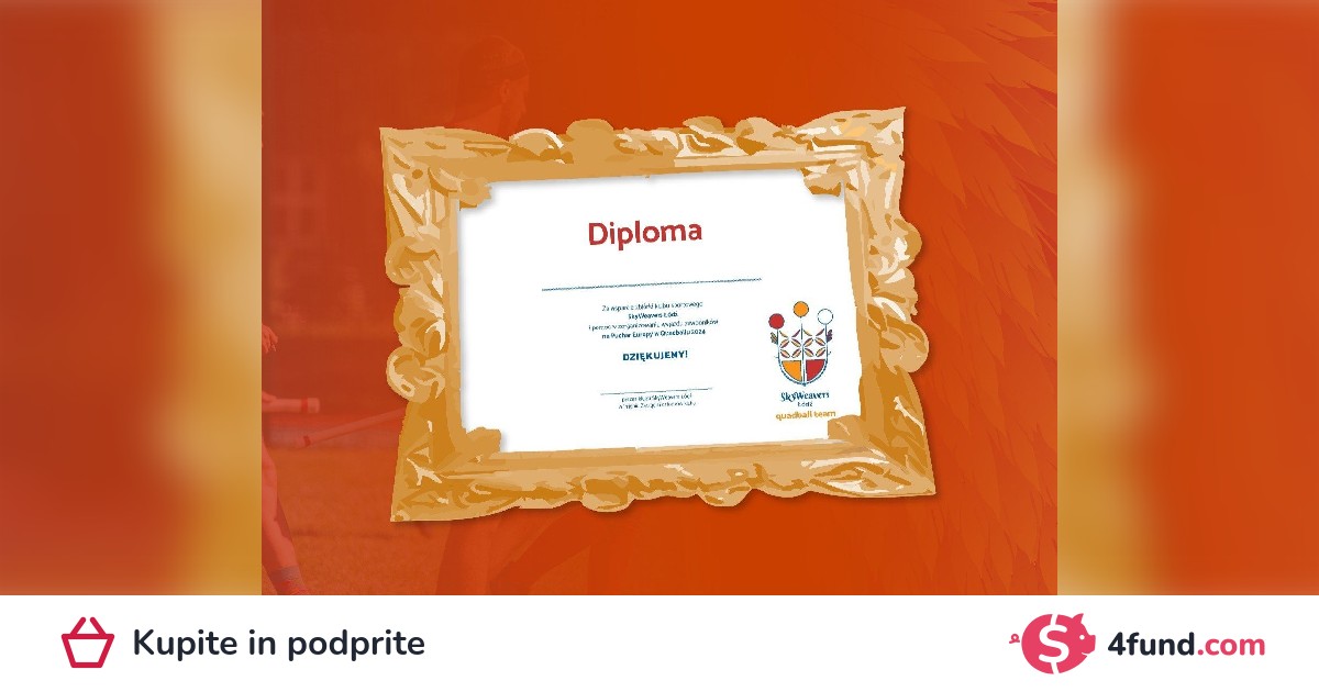 As part of our immense gratitude for the support of our team, you will receive an official diploma issued by our sports club. It is the perfect opportunity to share that you have a big heart as a sports patron and use it on social media, websites or to hang it in your office.
