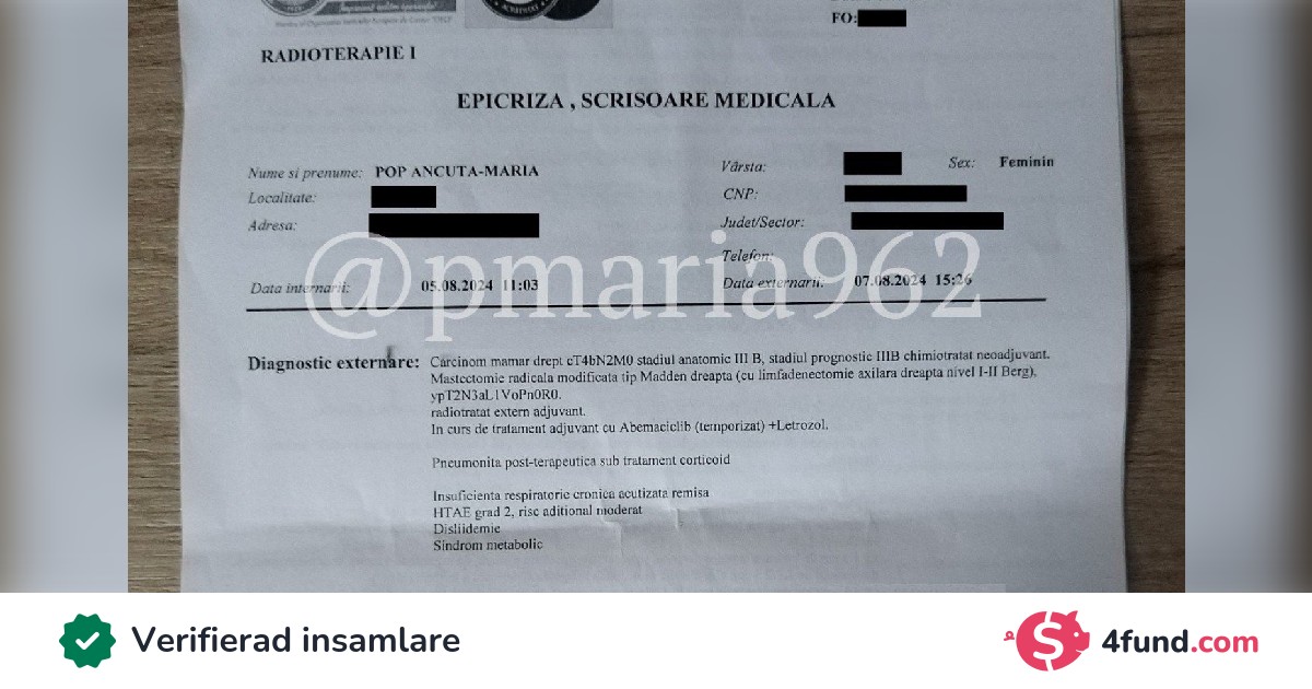 Jag vill än en gång tacka er alla från djupet av mitt hjärta för era donationer. Utan ert stöd skulle vi inte kunna göra någonting. För en sådan sjukdom får min mamma bara två små statliga bidrag som tillsammans inte ens når upp till 300 euro, och här måste nästan alla läkarbesök, medicinska tester och mediciner betalas. Jag är mycket tacksam mot er alla för att ni står vid vår sida, annars skulle vi inte ens ha tillräckligt att leva på.