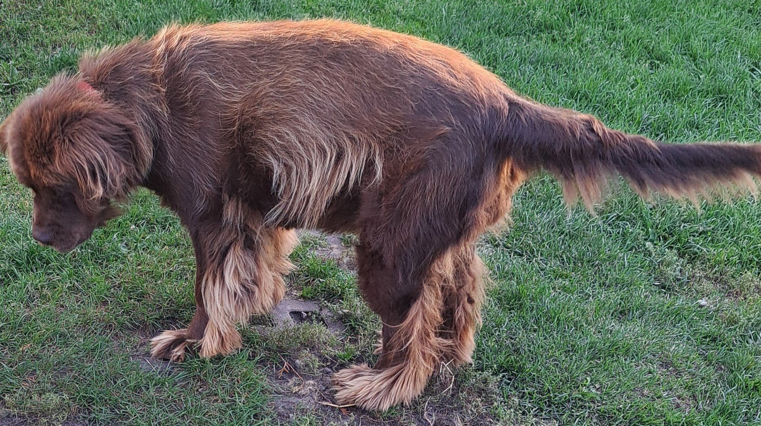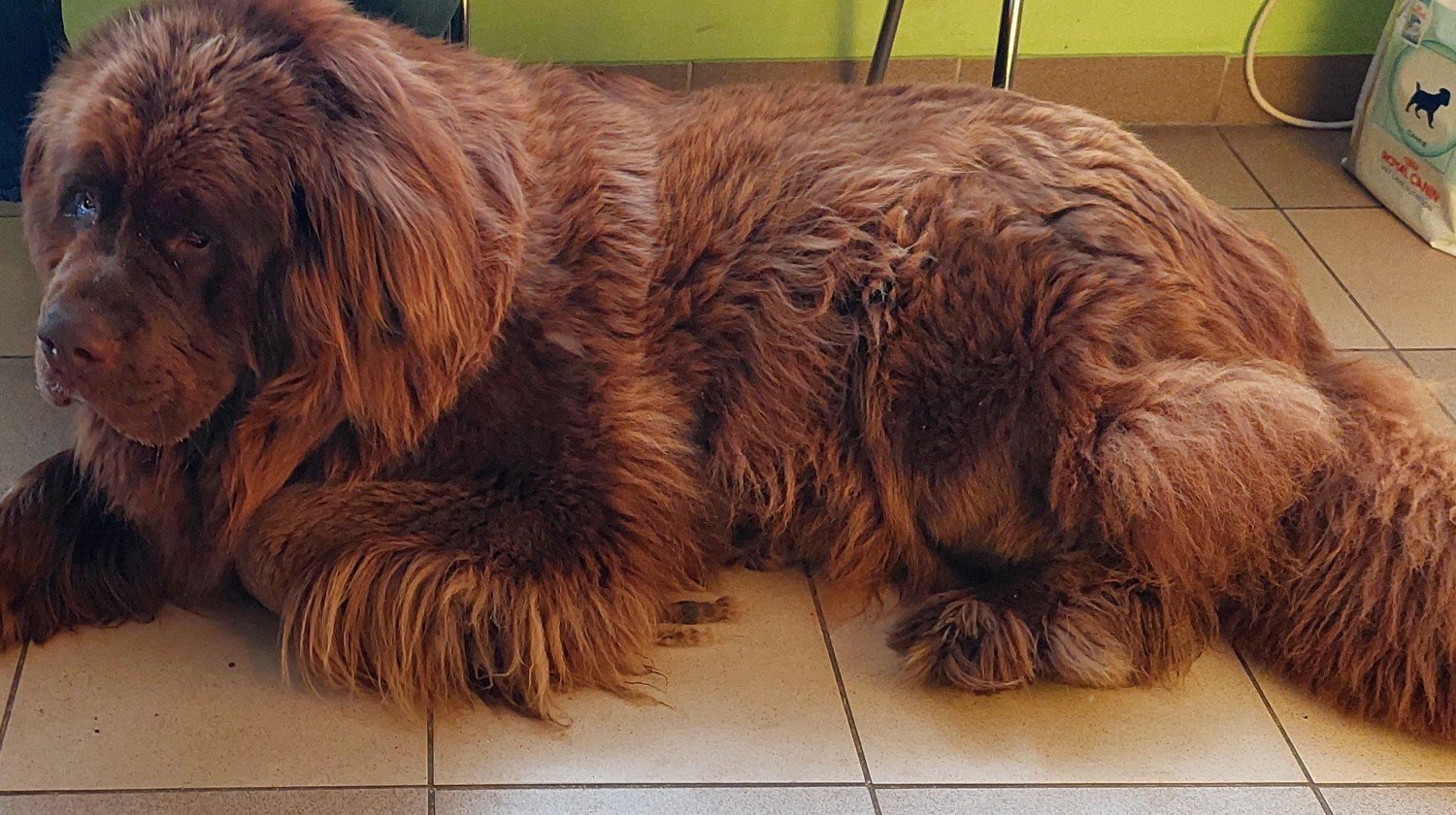 đ Den bruna newfoundlĂ€ndaren Kira kĂ€mpar för ett liv utan smĂ€rta