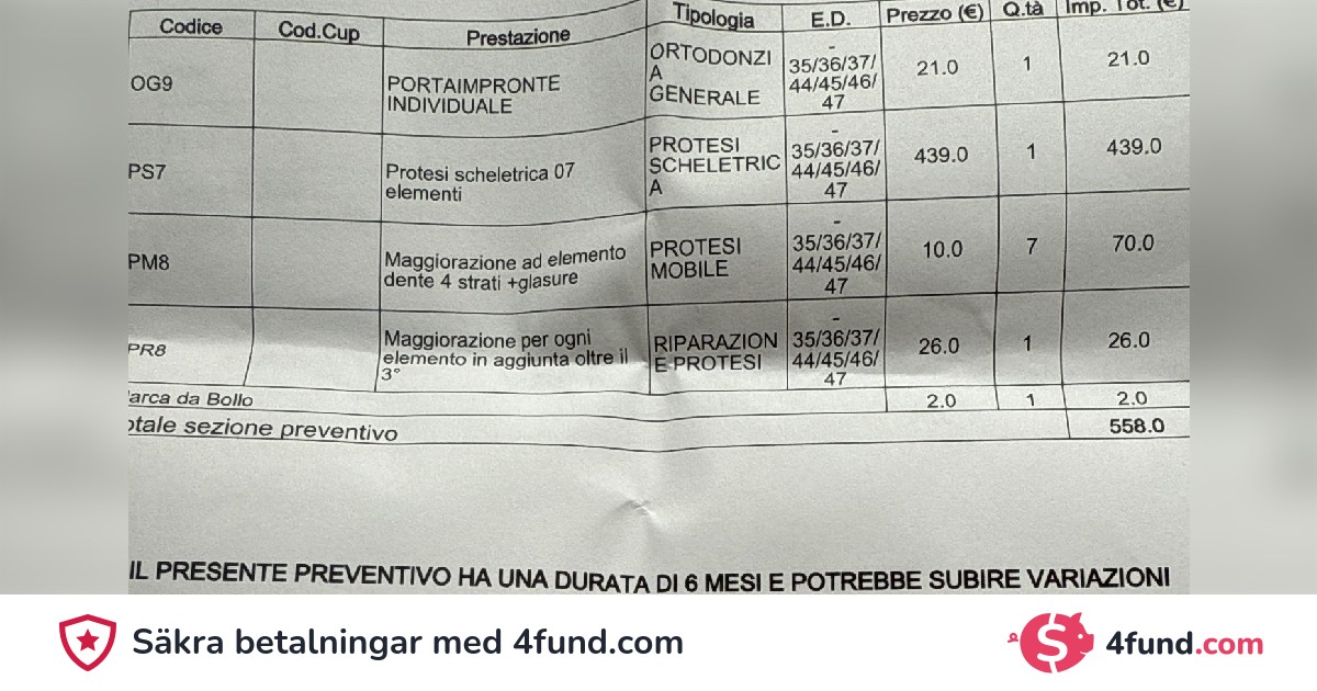 hej alla tyvärr måste jag ha akut tandvård, för några år sedan fick jag parodontit och jag började behandlingen eftersom jag hade möjlighet vid den här tiden har jag ingen möjlighet att betala, vid den här nuvarande tiden arbetar jag inte eftersom jag tar hand om mina ogiltiga föräldrar om någon kan hjälpa mig att nå detta belopp tack så mycket till alla som kan donera även lite
